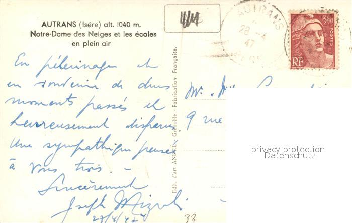 13504647 carte postale Autrans Notre Dame des Neiges et les ecoles postalisch gelaufen Erhaltung siehe scans [LiesaD40] KatCode: 11170038138021