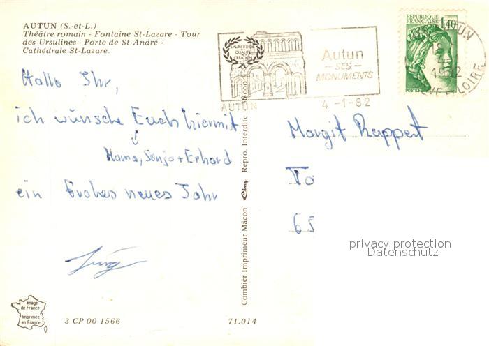 13363744 carte postale Autun Théâtre romain Fontaine Saint Lazare Tour des Ursulines Porte de Saint André Cathedrale Saint Lazare postalisch gelaufen Erhaltung siehe scans [FriedD77] KatCode: 11170071171014