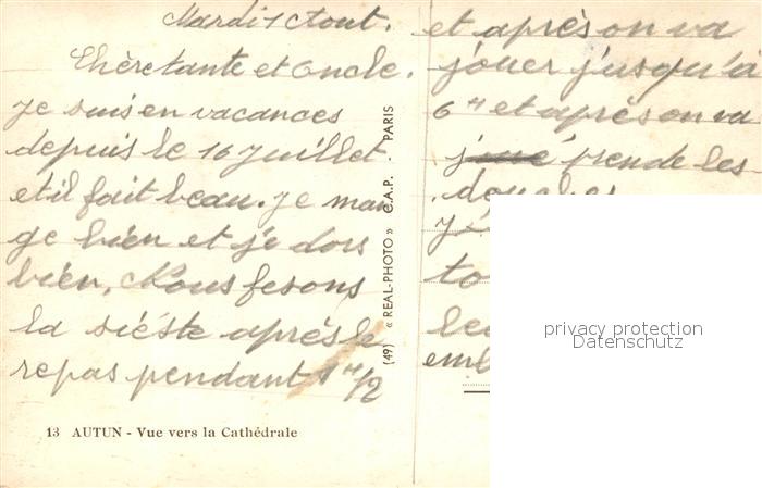 13534967 Autun Vue vers la Cathedrale postalisch nicht gelaufen Erhaltung siehe scans [WerneD78] KatCode: 11170071171014