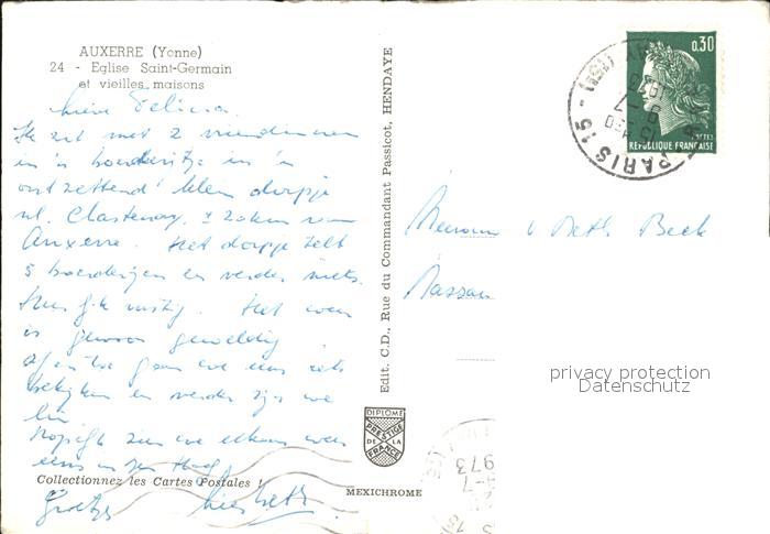 12463240 carte postale Auxerre Eglise Saint Germain et vieilles maisons postalisch gelaufen Erhaltung siehe scans KatCode: 11170089189024
