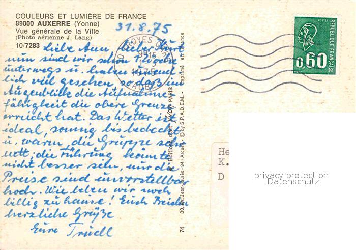12785997 Auxerre Vue aerienne de la Ville Collection Couleurs et Lumiere de France KatCode 11170089189024