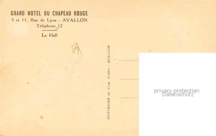 13710459 Avallon 89 Grand Hotel Du chapeau Rouge Le Hall KatCode 11170089289025