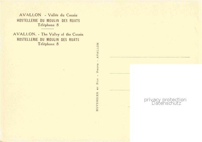 12758965 Avallon Hostellerie Du Moulin des Ruats postalisch nicht gelaufen Erhaltung siehe scans [AndreD76] KatCode: 11170089289025