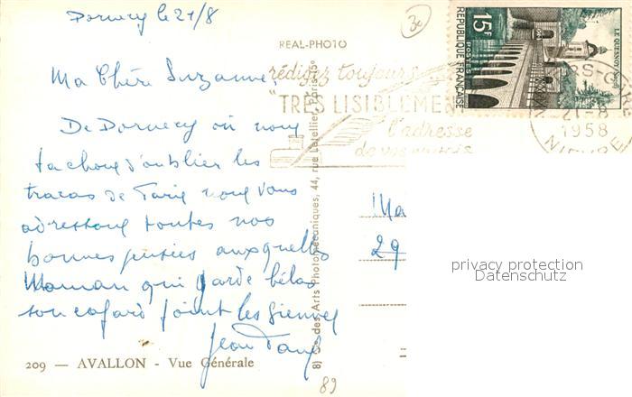 13487457 carte postale Avallon Vue Generale postalisch gelaufen Erhaltung siehe scans [FriedD77] KatCode: 11170089289025