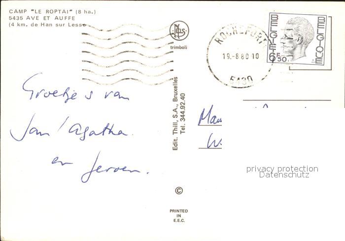72578619 carte postale Ave-et-Auffe Camp Le Roptai postalisch gelaufen Erhaltung siehe scans [LiesaD40] KatCode: 11070091003362