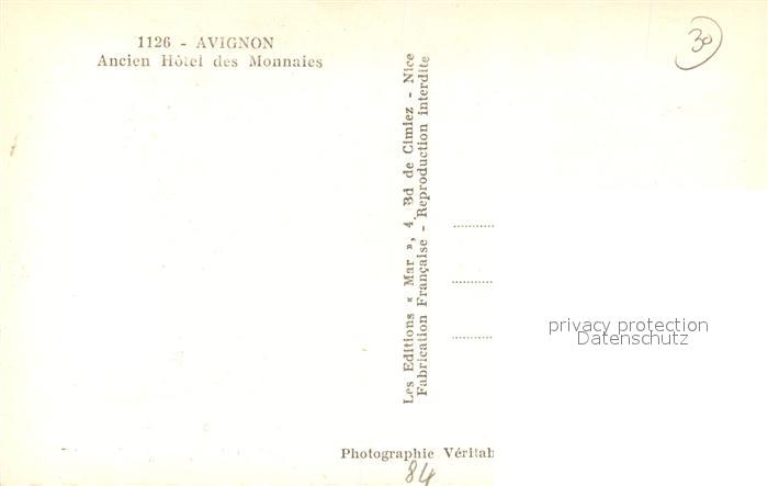 13486630 Avignon Vaucluse Ancien Hotel des Monnaies postalisch nicht gelaufen Erhaltung siehe scans [WerneD78] KatCode: 11170084284007