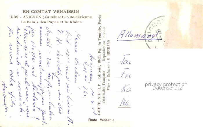 12706649 carte postale Avignon Vaucluse Fliegeraufnahme Le Palais des Papes et le Rhone postalisch gelaufen Erhaltung siehe scans [LiesaD40] KatCode: 11170084284007