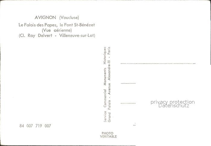 12341476 Avignon Vaucluse Fliegeraufnahme Palais des Papers Pont St. Benezet postalisch nicht gelaufen Erhaltung siehe scans KatCode: 11170084284007