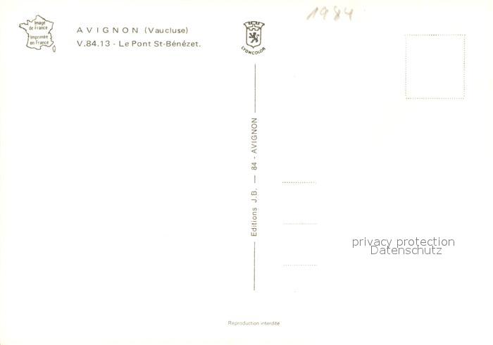 13063730 Avignon Vaucluse Le Pont St Benezet postalisch nicht gelaufen Erhaltung siehe scans [FriedD77] KatCode: 11170084284007
