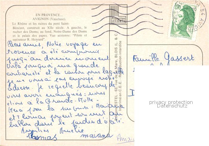 13721455 Avignon Vaucluse Le Rhone et les ruines du pont Saint Benezet Vue aerienne postalisch gelaufen Erhaltung siehe scans [WerneD78] carte postale Wern Katcode 11170084284007