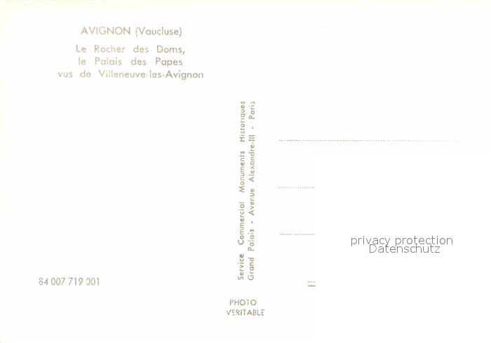 12901872 Avignon Vaucluse Le Rocher des Doms le Palais des Papes postalisch nicht gelaufen Erhaltung siehe scans [AndreD76] KatCode: 11170084284007