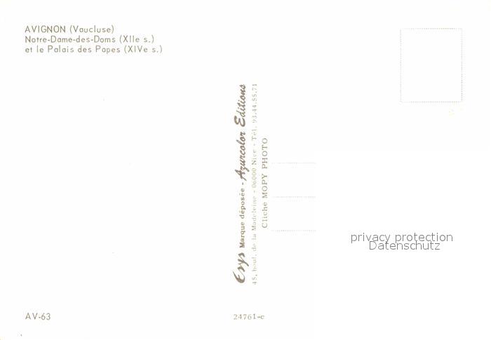 12812403 Avignon Vaucluse Notre-Dame-des-Doms Palais des Papes postalisch nicht gelaufen Erhaltung siehe scans [NatalD47] KatCode: 11170084284007