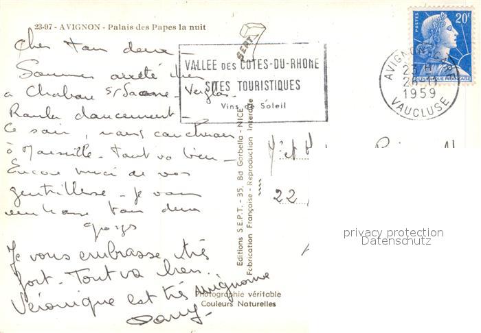 13520524 carte postale Avignon Vaucluse Palais des Papes Nacht postalisch gelaufen Erhaltung siehe scans [KathaD81] KatCode: 11170084284007