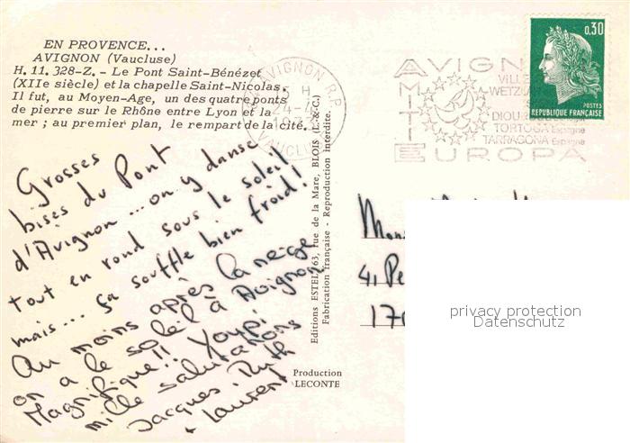 12707819 carte postale Avignon Vaucluse Pont Saint Benezet Chapelle Saint Nicolas postalisch gelaufen Erhaltung siehe scans [FriedD77] KatCode: 11170084284007