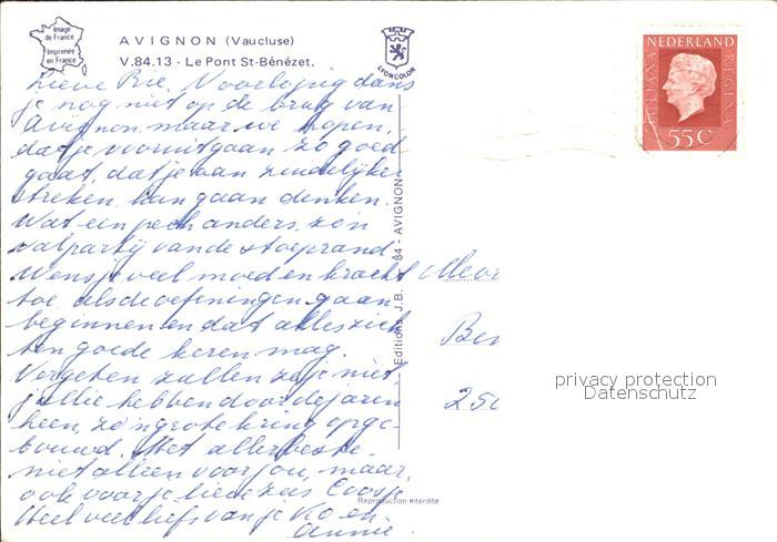 12493441 carte postale Avignon Vaucluse Pont St Benezet postalisch gelaufen Erhaltung siehe scans KatCode: 11170084284007