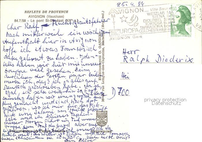 12039930 carte postale Avignon Vaucluse Pont St Benezet XII siecle Collection Reflets de Provence postalisch gelaufen Erhaltung siehe scans KatCode: 11170084284007