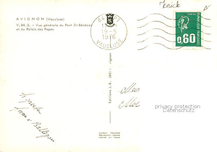 12936303 carte postale Avignon Vaucluse Vue generale du Pont St Benezet et du Palais des Papes postalisch gelaufen Erhaltung siehe scans [WerneD78] KatCode: 11170084284007