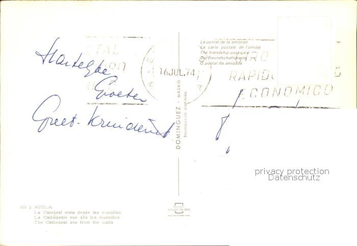 old postcard Avila Espana Cathedrale postalisch gelaufen Erhaltung siehe scans