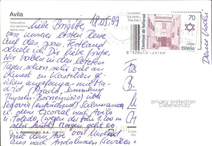 old postcard Avila Espana Fliegeraufnahme Altstadt postalisch gelaufen Erhaltung siehe scans