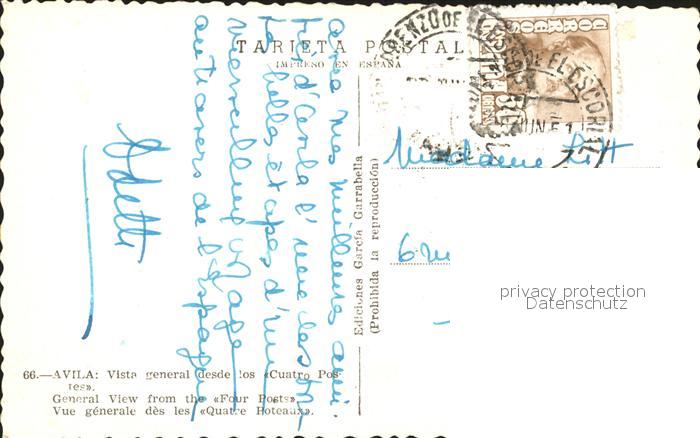 old postcard Avila Espana Vista general Cuatro Postaes postalisch gelaufen Erhaltung siehe scans