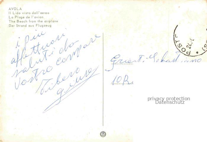 74034266 old postcard avola Syrakus Siracusa Sicilia IT Il lido visto dall aereo postalisch gelaufen Fliegeraufnahme Erhaltung siehe scans [FriedD77] KatCode: 11240