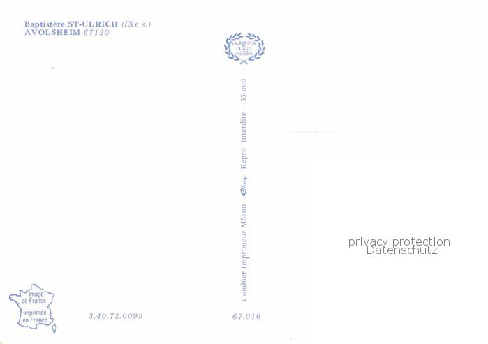 12917777 Avolsheim Babtistere St. Ulrich postalisch nicht gelaufen Erhaltung siehe scans [LiesaD40] KatCode: 11170067367016