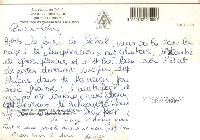 13638057 Avoriaz Promenade en traineau face a la station postalisch nicht gelaufen Erhaltung siehe scans [WerneD78] Wern Katcode 11170074474191