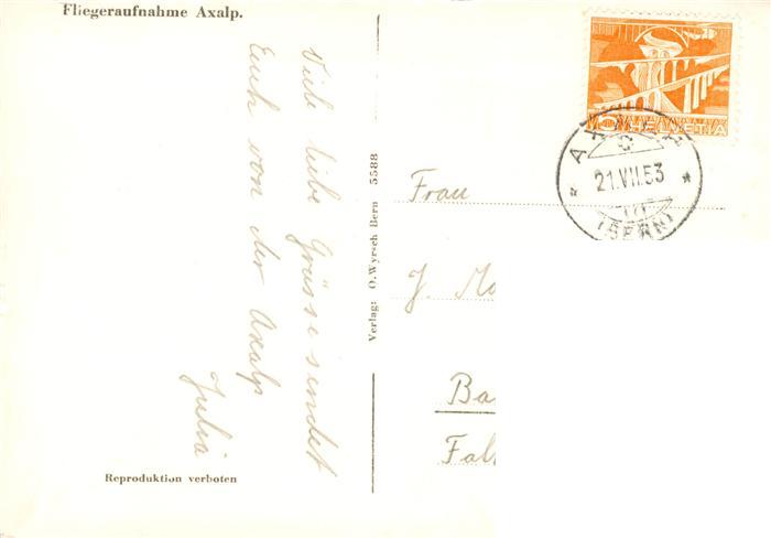 13889392 alte Postkarte Axalp BE Fliegeraufnahme postalisch gelaufen Erhaltung siehe scans [WerneD78] KatCode: 11470060175242