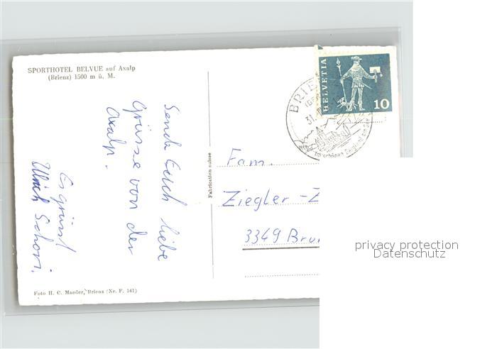 11834651 alte Postkarte Axalp BE Sporthotel Bellevue Skigebiet postalisch gelaufen Erhaltung siehe scans KatCode: 11470060175242