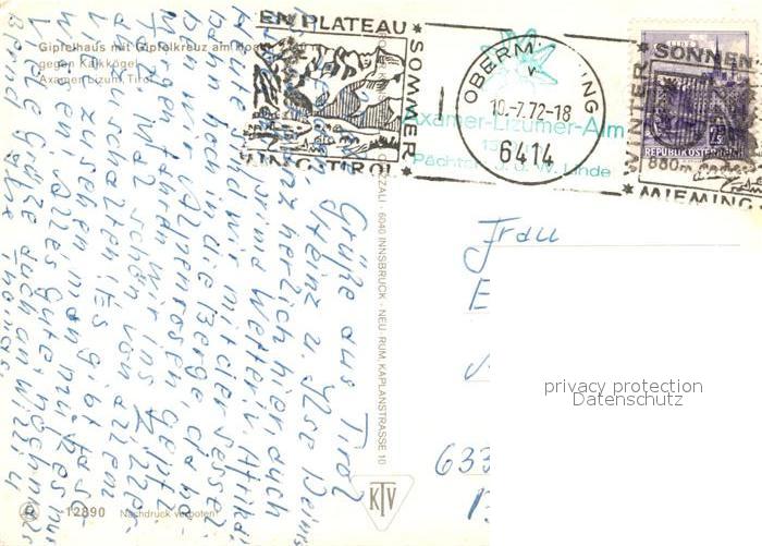73295072 alte Postkarte Axamer Lizum Gasthaus mit Gipfelkreuz mit Kalkkoegel postalisch gelaufen Erhaltung siehe scans [WerneD78] KatCode: 11390332070304
