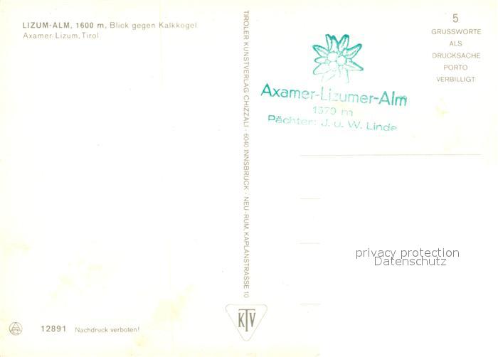73295910 Axamer Lizum Lizum Alm mit Kalkkoegel postalisch nicht gelaufen Erhaltung siehe scans [WerneD78] KatCode: 11390332070304