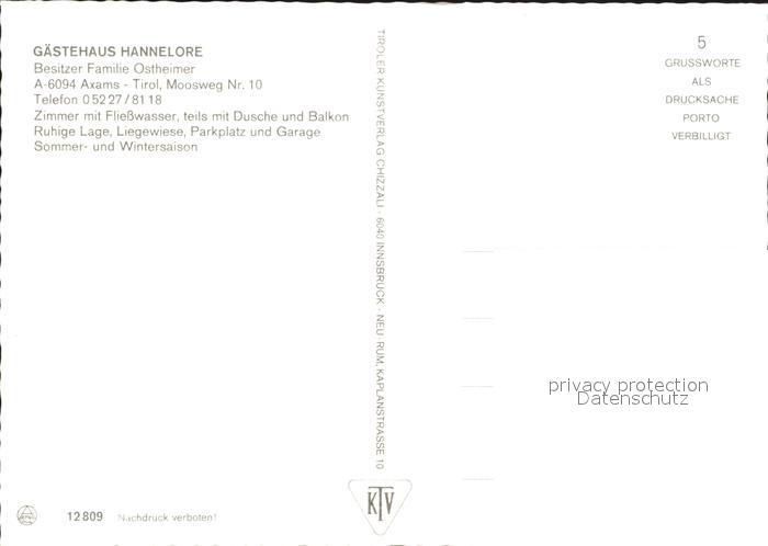 71907342 Axams Gaestehaus Hannelore postalisch nicht gelaufen Erhaltung siehe scans KatCode: 11390332070304