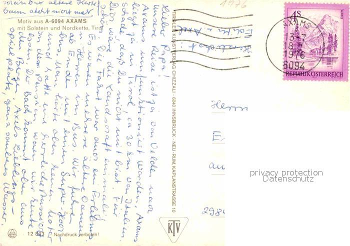 72862689 alte Postkarte Axams mit Solstein und Nordkette postalisch gelaufen Erhaltung siehe scans [WerneD78] KatCode: 11390332070304