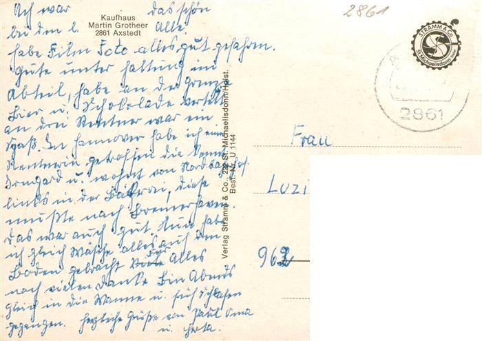 73909201 alte Postkarte Axstedt Kaufhaus Martin Grotheer Siedlung Schule postalisch gelaufen Erhaltung siehe scans [FriedD77] KatCode: 11110003356001