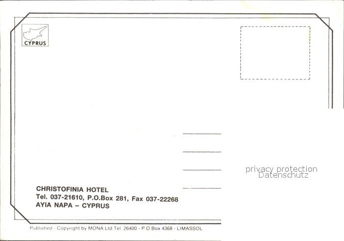 Ayia Napa Agia Napa Christofinia Hotel postalisch nicht gelaufen Erhaltung siehe scans