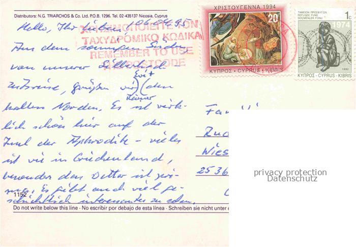 74152857 old postcard Ayia Napa Agia Napa Cyprus Fliegeraufnahme Tor Palmen Strand postalisch gelaufen Erhaltung siehe scans [WerneD78] KatCode: 13190