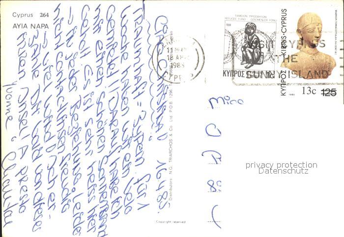 alte Postkarte Ayia Napa Agia Napa Strand Segelboot postalisch gelaufen