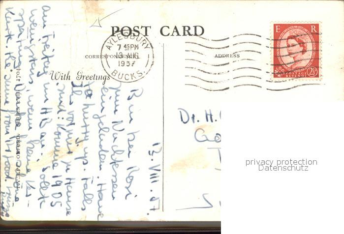 old postcard Aylesbury Market Square Hight Street Vale Gardens Bulls Head Hotel Church postalisch gelaufen Erhaltung siehe scans