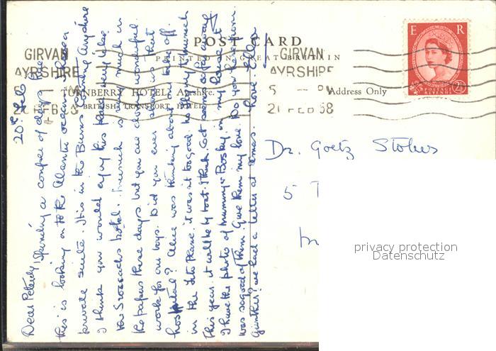72154602 old postcard Ayrshire Turnberry Hotel postalisch gelaufen Erhaltung siehe scans KatCode: 14140170000000