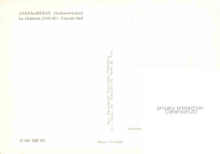 12790004 Azay-le-Rideau Chateau postalisch nicht gelaufen Erhaltung siehe scans [LiesaD40] KatCode: 11170037137014