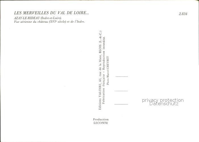 12240489 Azay-le-Rideau Fliegeraufnahme Chateau postalisch nicht gelaufen Erhaltung siehe scans KatCode: 11170037137014