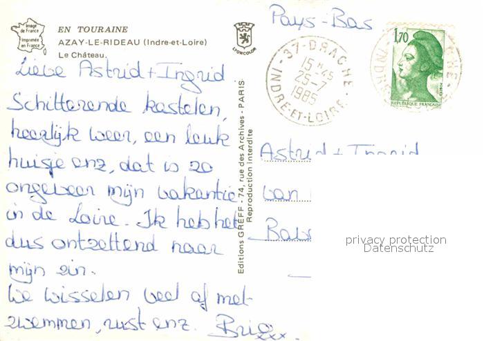 12664383 carte postale Azay-le-Rideau Le Chateau postalisch gelaufen Erhaltung siehe scans [WerneD78] KatCode: 11170037137014