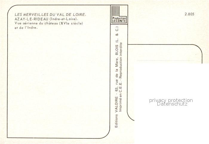 13003298 Azay-le-Rideau Les Merveilles du val de Loire Chateau postalisch nicht gelaufen Erhaltung siehe scans [KathaD81] KatCode: 11170037137014