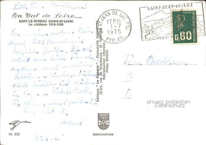 12595422 carte postale Azay-le-Rideau Panorama Le Chateau postalisch gelaufen Erhaltung siehe scans [WerneD78] KatCode: 11170037137014