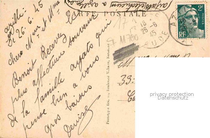 12657232 carte postale Azille Teilansicht postalisch gelaufen Erhaltung siehe scans [AndreD76] KatCode: 11170011111022