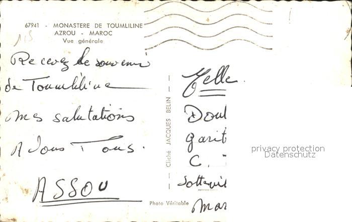 old postcard Azrou Marokko Monastere de Toumliline postalisch gelaufen Erhaltung siehe scans