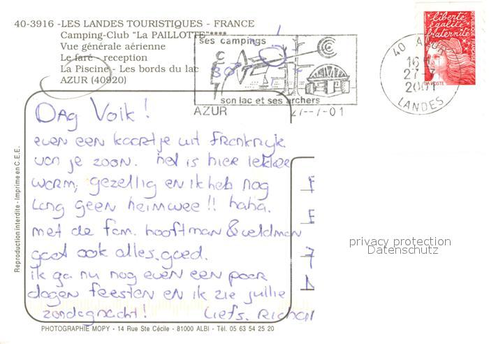 13718689 Azur 40 Camping Club La Paillotte vue aérienne postalisch gelaufen Erhaltung siehe scans [FriedD77] carte postale Frie Katcode 11170040140021