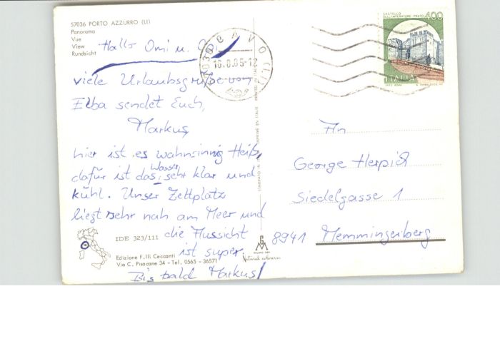 old postcard Azzurro Porto postalisch gelaufen