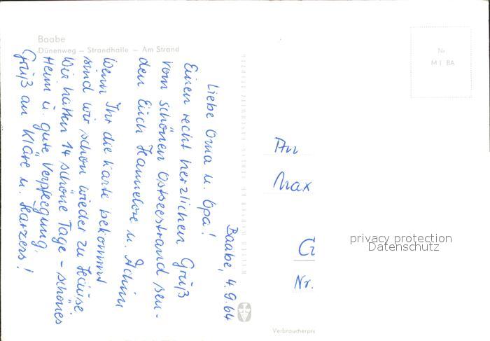 72382348 Baabe Ostseebad Ruegen Duenenweg Strandhalle postalisch nicht gelaufen Erhaltung siehe scans KatCode: 11110013061003