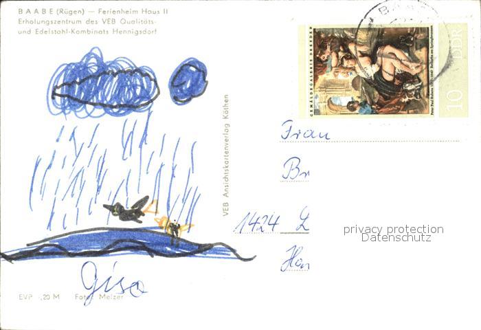 72117636 alte Postkarte Baabe Ostseebad Ruegen Erholungsheim des VEB Henningsdorf postalisch gelaufen Erhaltung siehe scans KatCode: 11110013061003